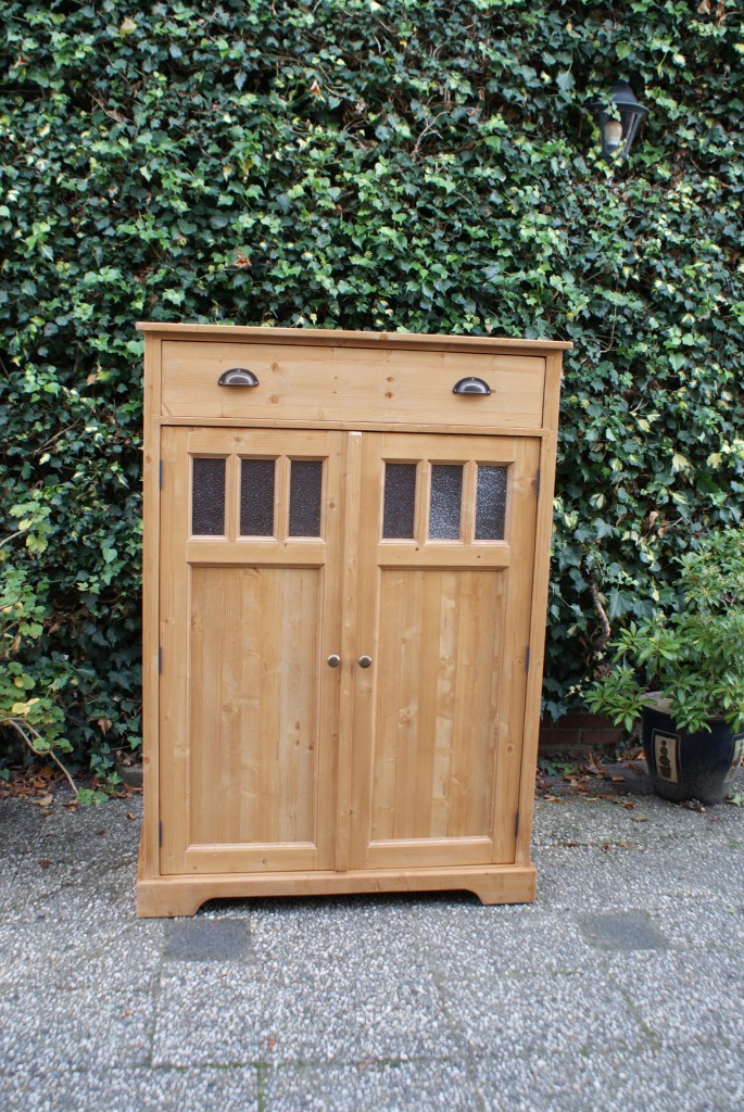 Grenen meidenkast glas