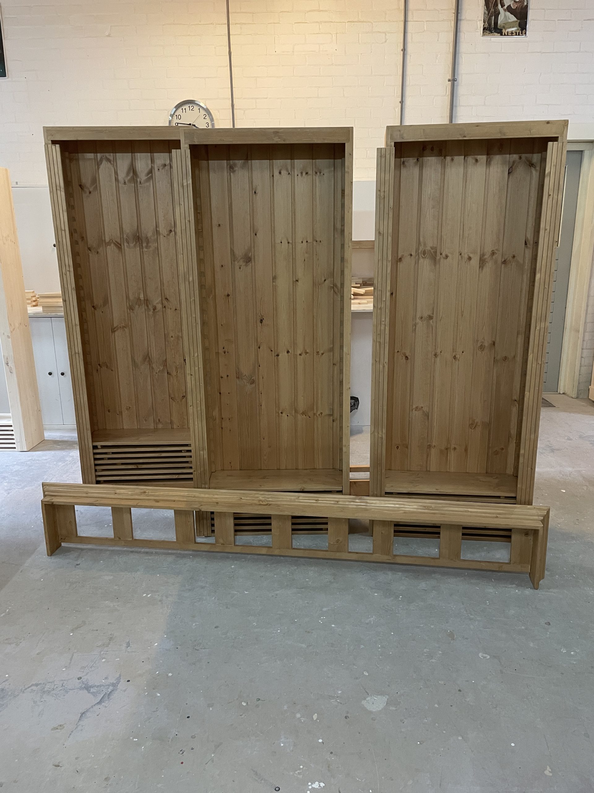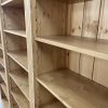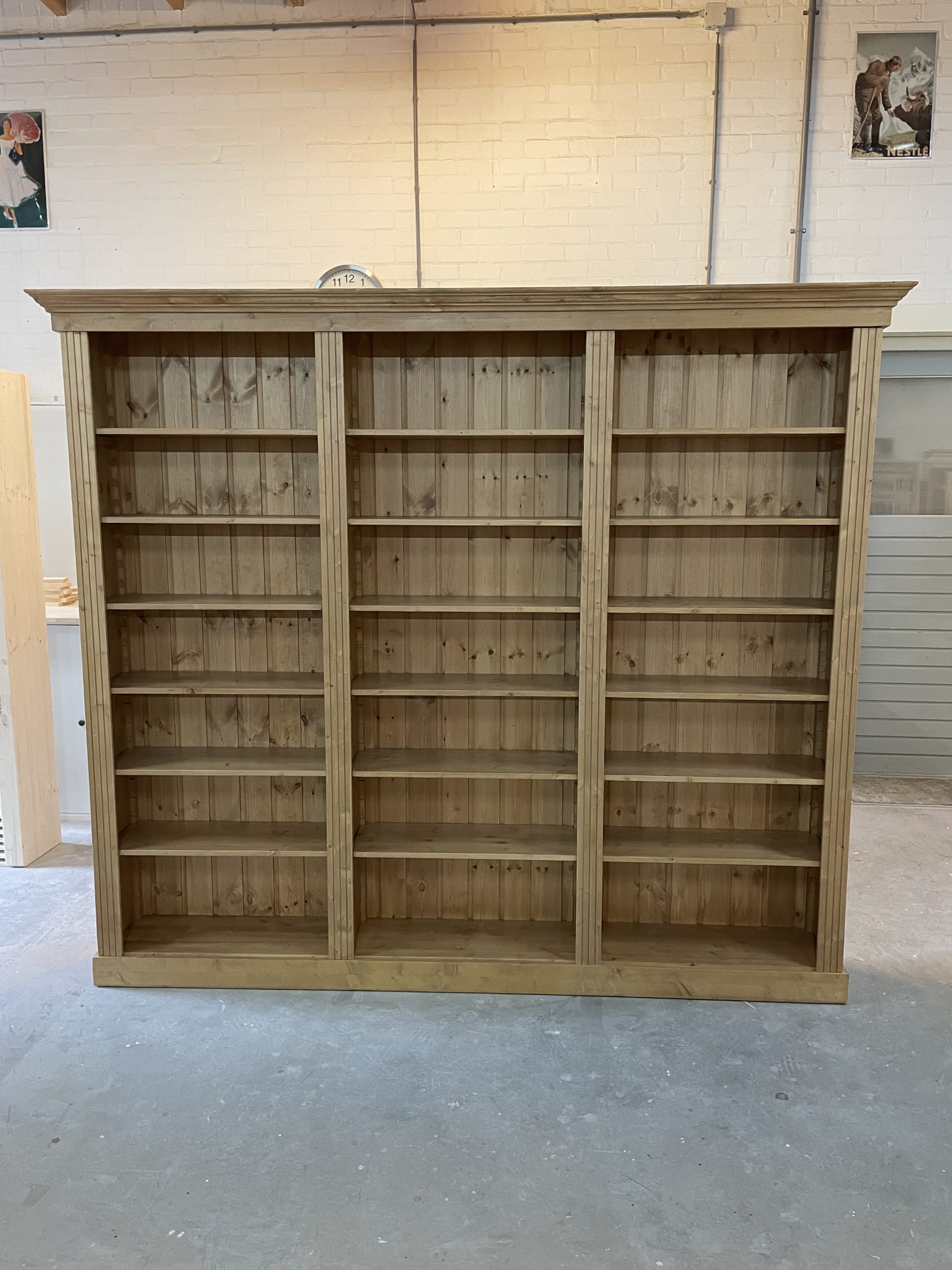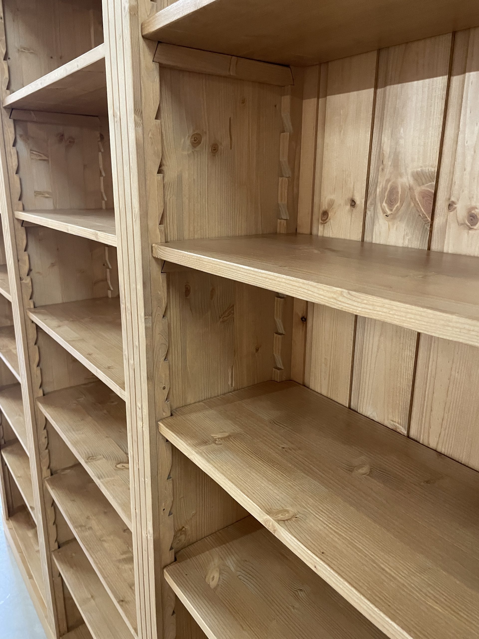 Boekenkast massief hout demontabel gemaakt. Dit model boekenkasten bestaat uit een plintframe, drie losse boekenkast elementen en een framewerk met koplijst te zien op de detailfoto`s. Door deze traditionele bouwwijze is de boekenkast makkelijk in de woning te plaatsen en blijft altijd te verhuizen. We hebben de kast op een strakke plintlijst geplaatst, de zij- en tussenstijlen zijn voorzien van rillen. Bovenaan de kast zit een geprofileerde koplijst model br 50 h 60 mm. De boekenplanken zijn via een traditioneel houten keeplatten systeem in hoogte verstelbaar. We hebben deze boekenkast Almere ook in verschillende andere afmetingen en afwerkingen op de site staan.