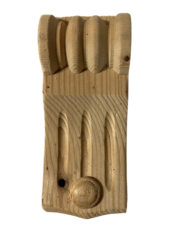 Bolsnek met druppel die 5cm breed is en 12 cm hoog. Dit soort ornamenten vind je terug op meubelen die gemaakt werden in de Grùnderzeit meubelstijl periode die liep van ongeveer 1870 tot 1914. Bij meubelen die je moet restaureren of wilt opknappen zijn dit soort ornamenten vaak beschadigd of zijn ze aangetast door de houtworm en dan is vervanging noodzakelijk. Het kleine bolletje onderaan het ornament noemen we een druppel, die werden er vroeger op gelijmd. Deze druppels hebben we ook los te koop: Gründerzeit druppel bolsnek