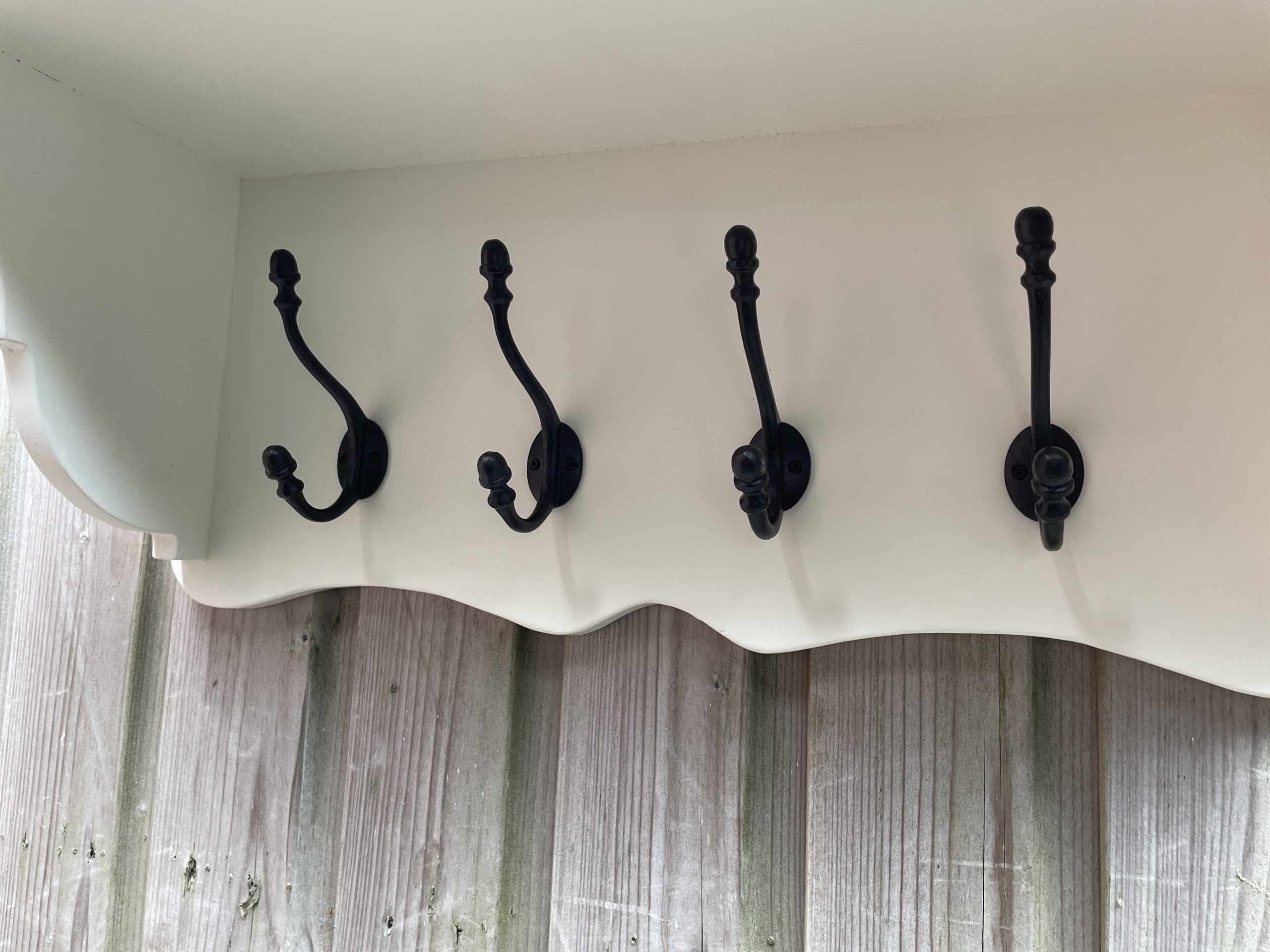 Charmante landelijke kapstok van 65 cm breedte. De mooi gedetailleerde stevige zwarte kapstokhaken zijn op een sierlijk gebogen bord gemonteerd. Boven de haken zit een mooie ruime plank waar je leuk allerlei spulletjes op kwijt kunt. De plank noemen ze een hoedenplank en was in lang vervlogen tijden bedacht als plekje voor de hoeden. Deze charmante landelijke kapstok is afgewerkt in een witte kleur. Het is watervast dus je natte jassen, sjaals of mutsen zullen geen watervlekken achterlaten. Schoonmaken kun je dan ook gerust met een vochtige doek of als je dat gewoon bent met een droge stofdoek doen. Een sierlijke en functionele kapstok die een sfeermaker is voor elk interieur. Ben je op zoek naar een bredere kapstok hebben we dit bijvoorbeeld: landelijke kapstok 80 cm en in een breedte van 90 cm dit model: landelijke wandkapstok wit