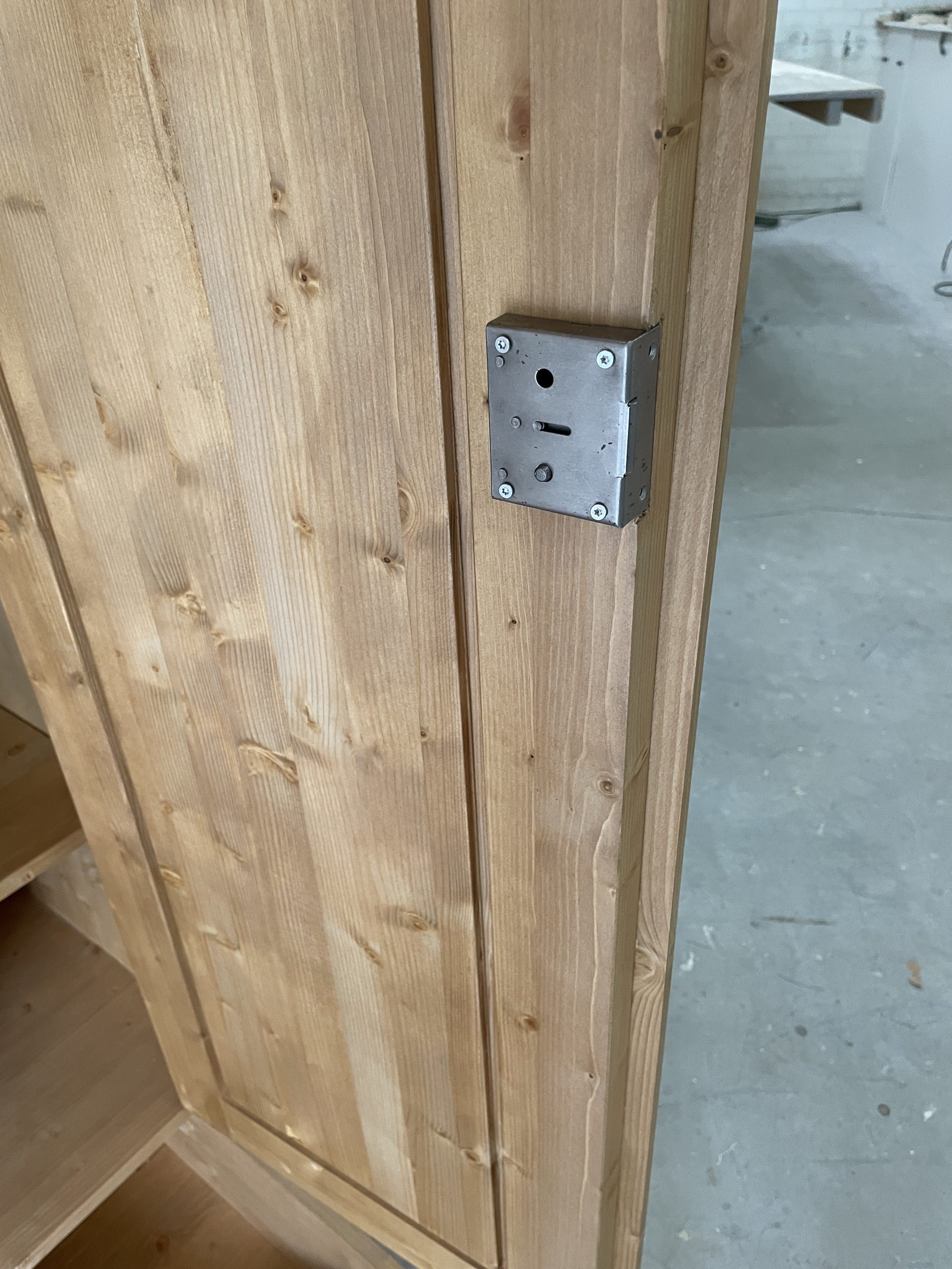 Deze geloogd grenen kast is gemaakt uit één geheel en kan door ons alleen op de begane grond geplaatst worden. Door de afmetingen en gewicht is het voor ons niet mogelijk om een dergelijke kast via een trap op een bovenverdieping te plaatsen. Bezorging naar een appartement met lift is wel mogelijk.