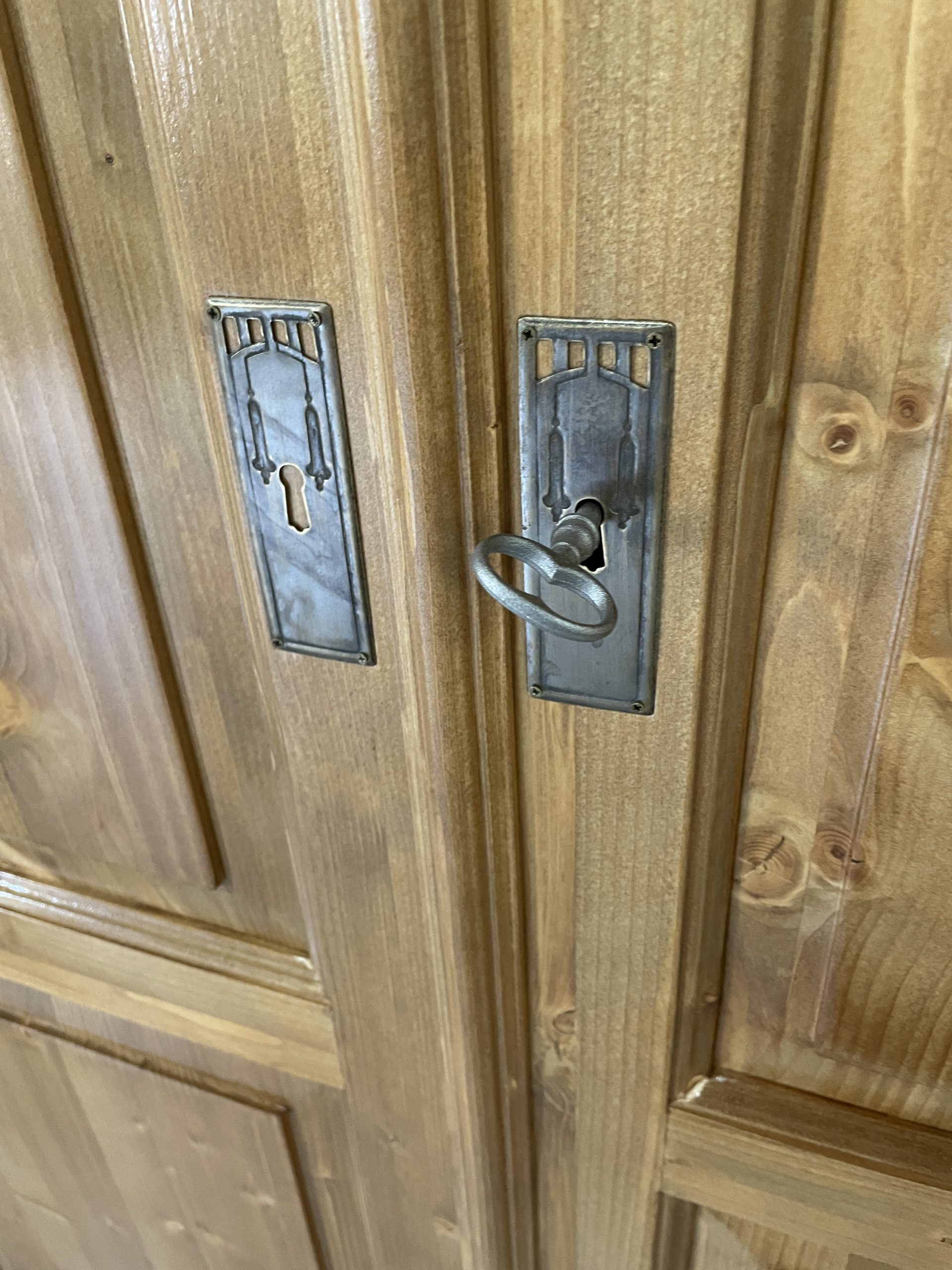 Deze klassieke houten kast staat op kastpoten, heeft strakke zijstijlen en een geprofileerde koplijst bovenaan, model br 50 h 60 mm. Er is een traditioneel meubelslot met sleutel gebruikt om de deuren te kunnen openen en sluiten. We kunnen ook met een magneetsysteem werken, dan worden de deuren geopend via meubelknoppen. Via onze opties kun je zelf bepalen welke uitvoering je het liefste hebt. Deze kast is in de antiek grenen kleur zijdeglans gelakt afgewerkt, wil je de kast liever in een verfkleur kan dat ook. Een verfkleur afwerking is wel duurder dan in de houtkleur. De productkosten voor verf en het aantal benodigde uren om aan te brenegn liggen hoger dan bij een houtkleur afwerking. Deze kast bestaat uit één geheel, is niet demontabel, en kan zodoende door ons niet via een trap op een verdieping geplaatst worden. Als het gaat om een plaatsing in een appartement met lift kan de kast gewoon bezorgd worden.