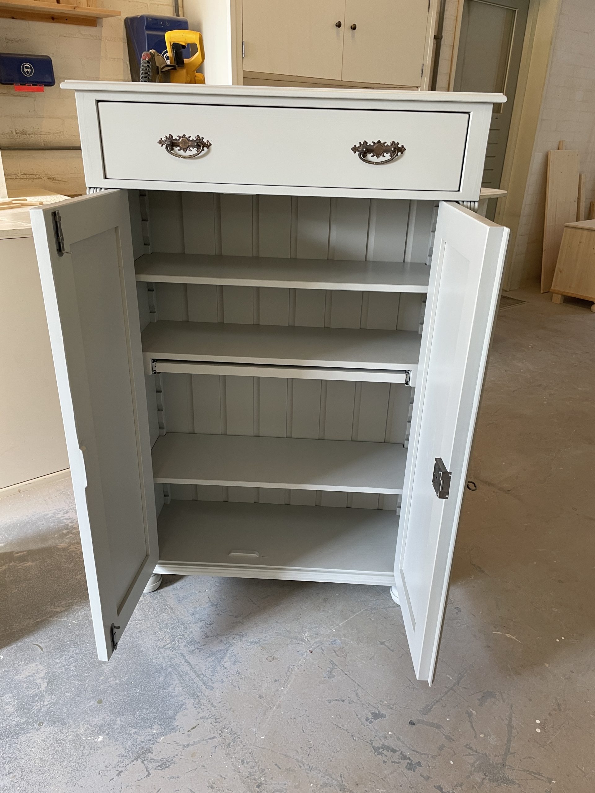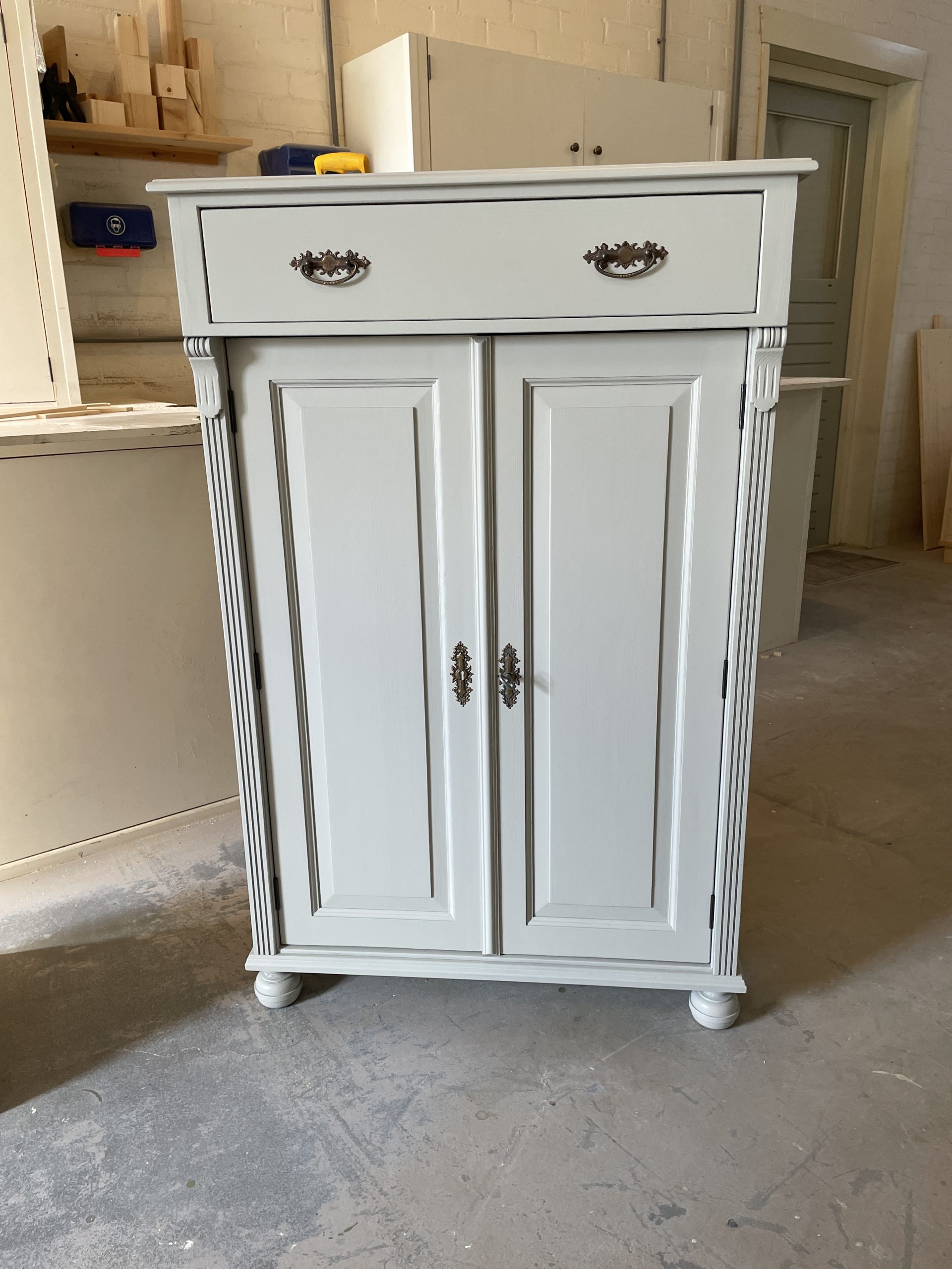 Traditioneel hebben klassieke meidenkasten twee deuren en een lade boven, ze zijn tussen de 130 cm en 150 cm hoog. Die hoogte is niet zomaar gekozen, het is hoger dan commodes en lager dan linnenkasten, bij deze hoogte kun je nog in de lade kijken, een functionele keuze dus. De meidenkast wordt ook wel vertiko genoemd, vooral in de antiekhandel, waarschijnlijk vernoemd naar de Duitse meubelmaker Otto Vertikow. Meidenkasten vinden tegenwoordig meestal een plekje in de woonkamer, slaapkamer of hal. We hebben dit model ook al eens gemaakt afgewerkt in een hout kleur: grenen meidenkast vertiko.