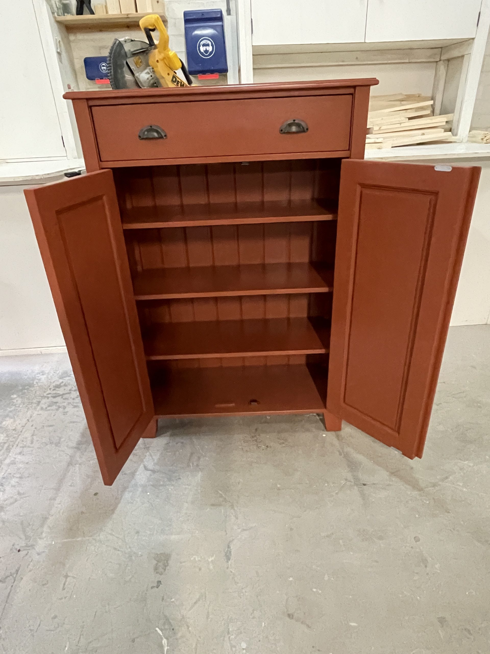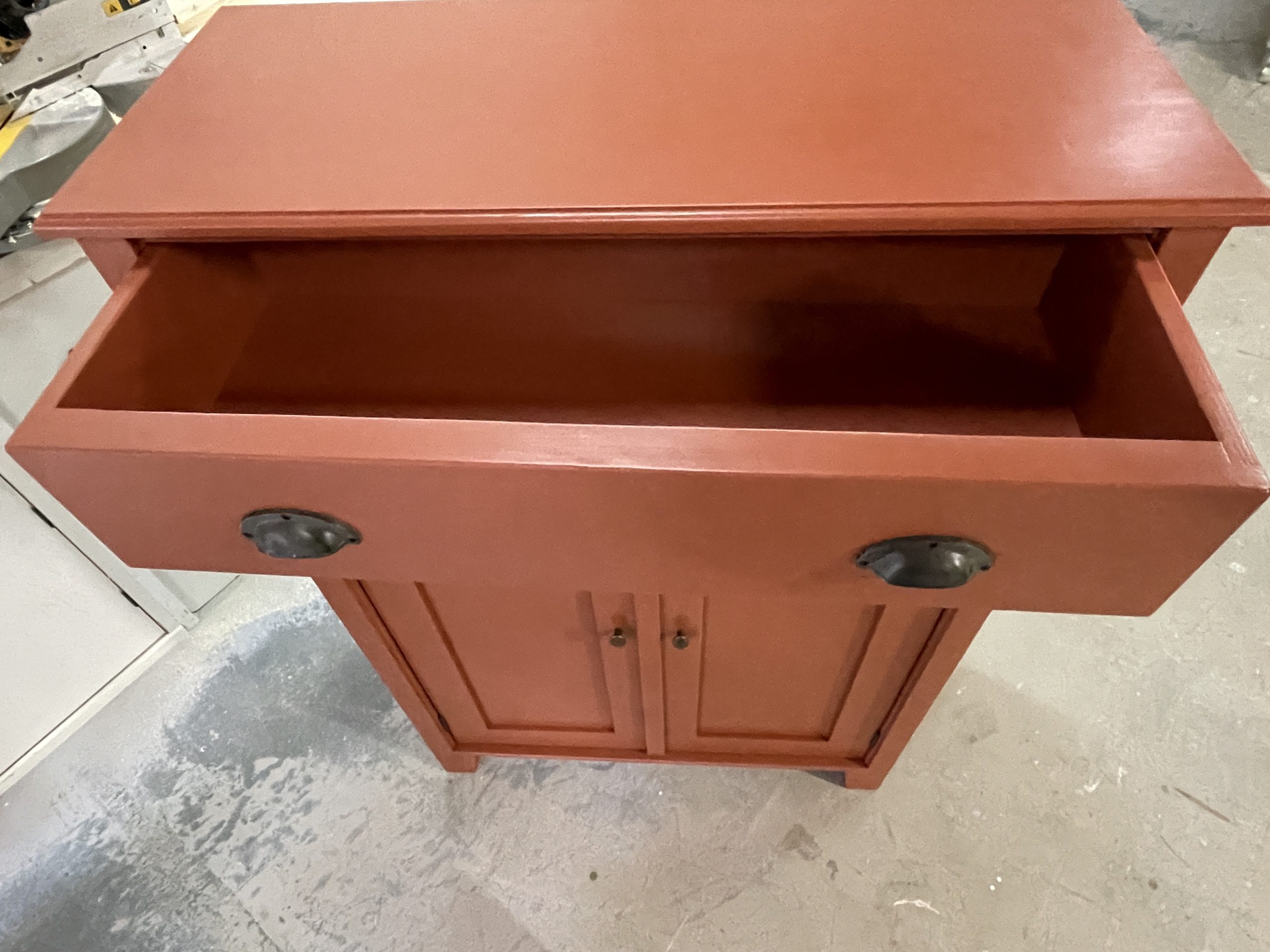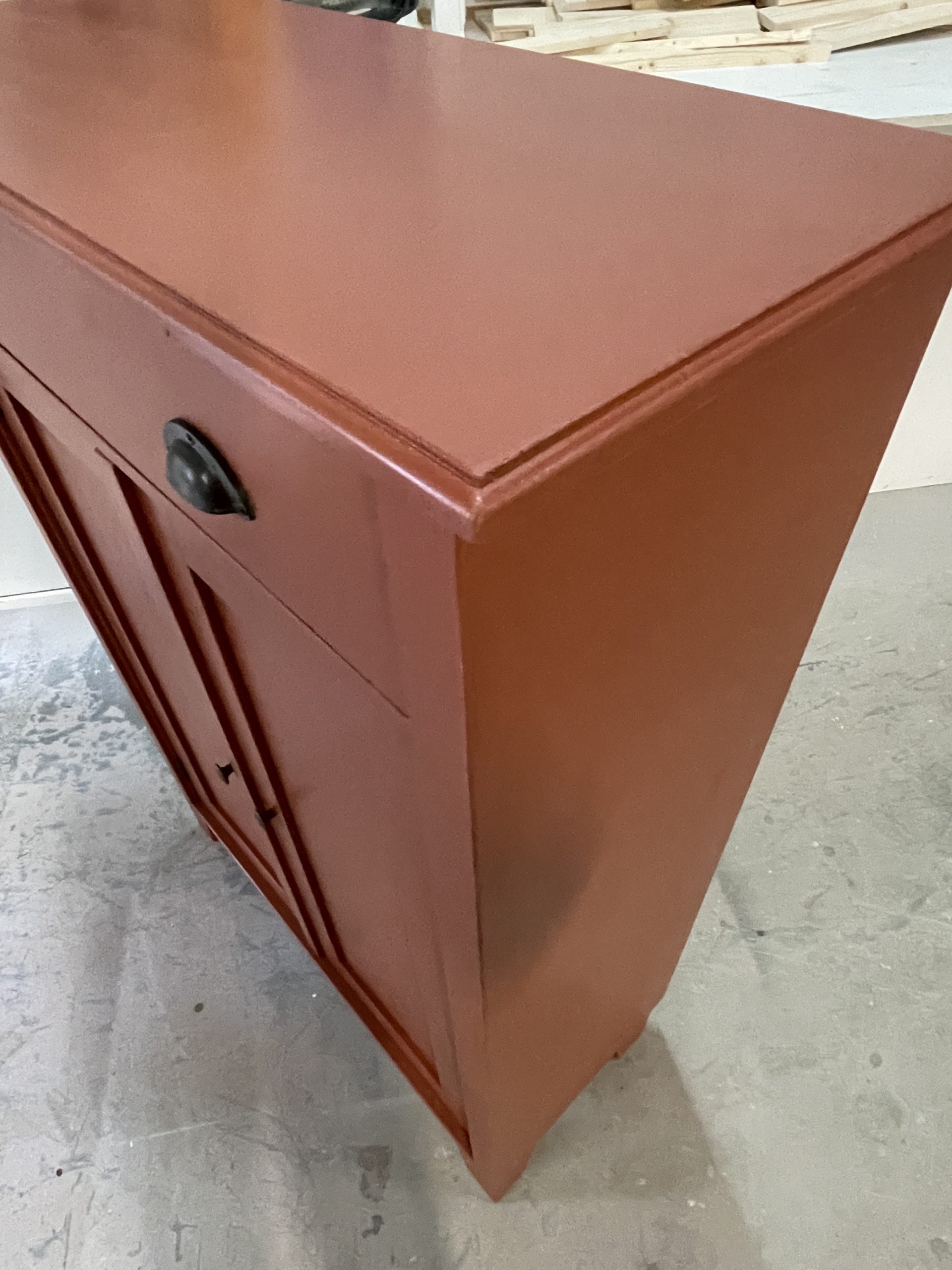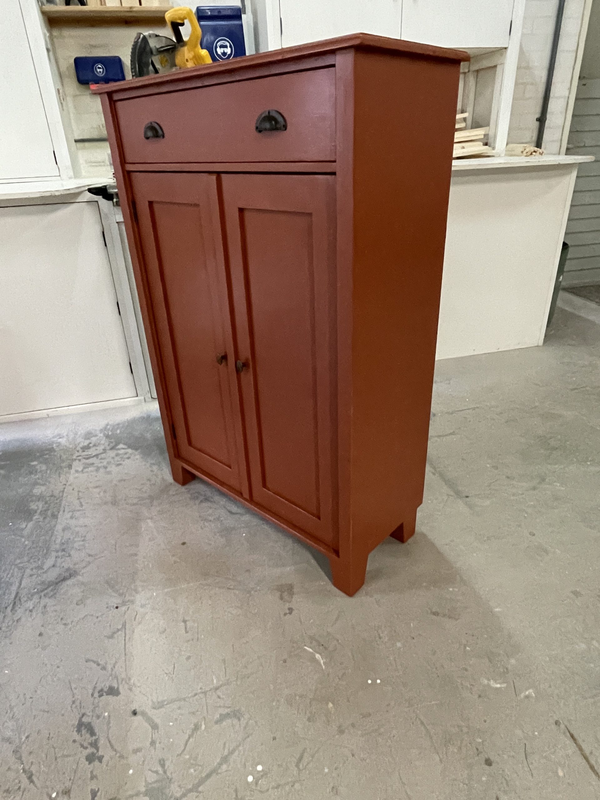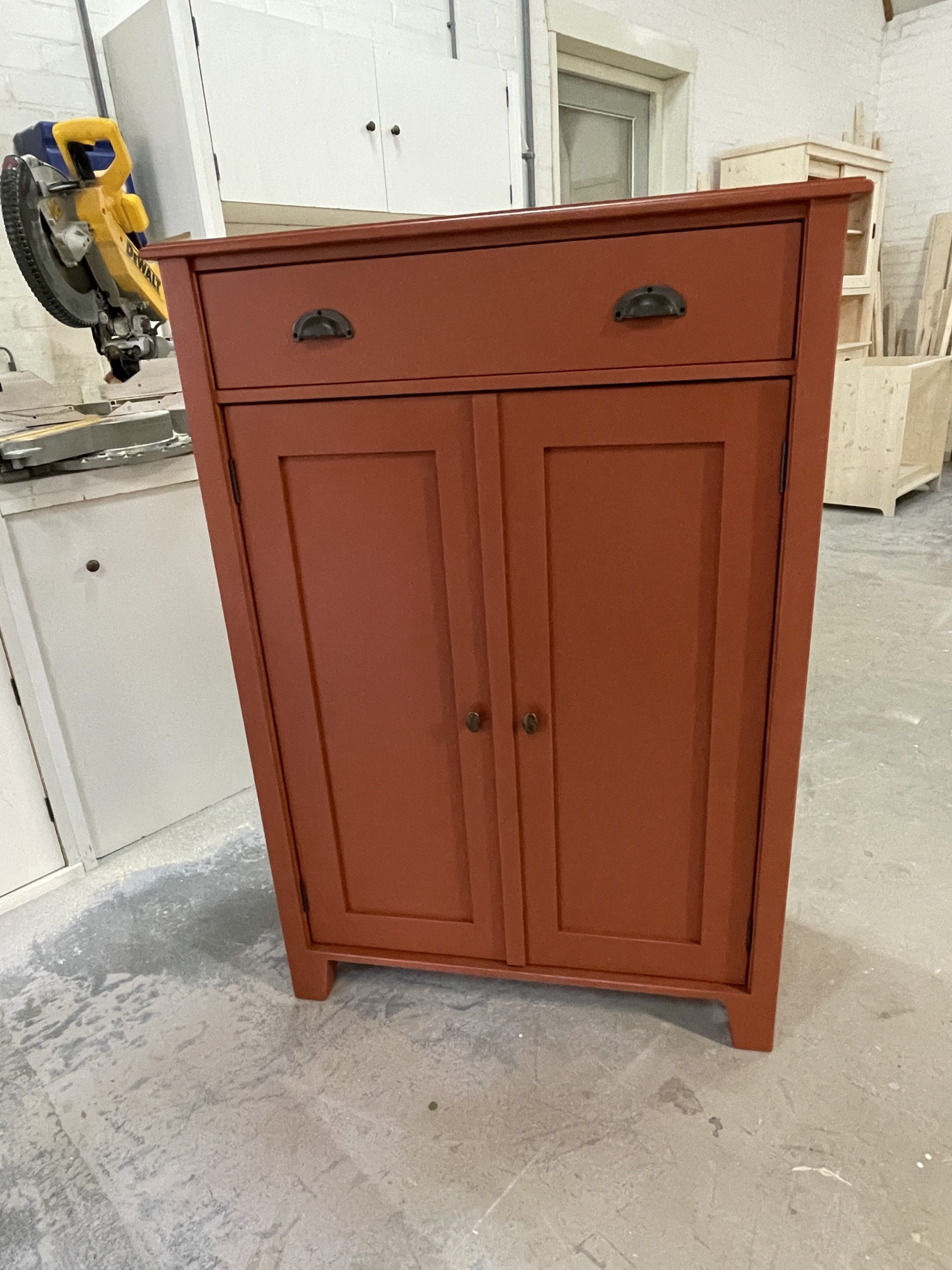 Deze meidenkast in Ral kleur 8004 is in onze meubelmakerij op maat gemaakt waarbij je de keuze hebt uit verschillende opties. Alle meidenkasten worden met de hand op ambachtelijke wijze geproduceerd, wij gebruiken alleen massief hout ook voor de achterwanden en bodems in laden. Op deze pagina krijg je meer uitleg over de diverse meubelopties.