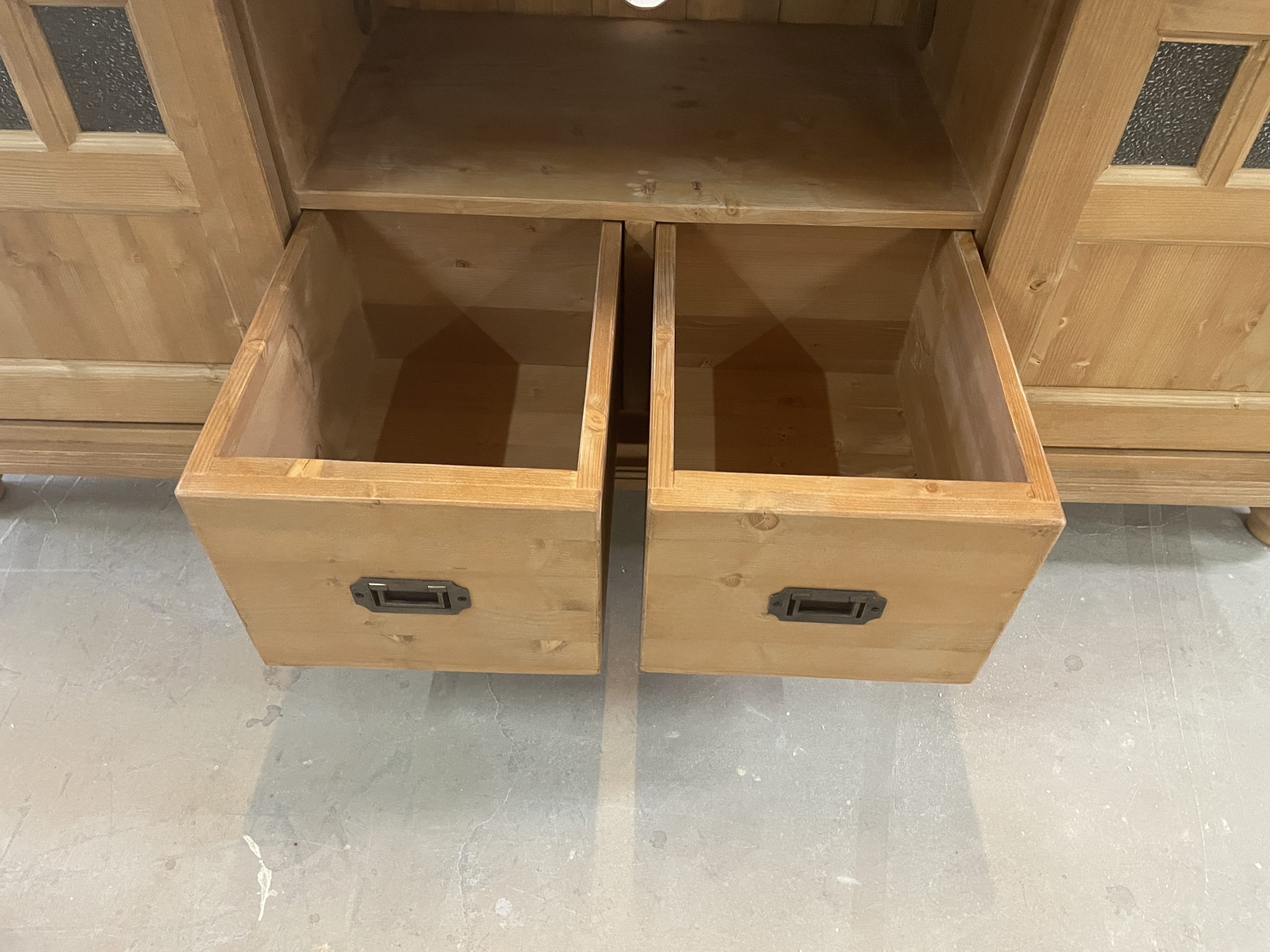 Achter de schuifdeuren zijn traditionele houten keeplatten geplaatst. Hierdoor is de legplank eenvoudig in hoogte verstelbaar. Het open vak is standaard circa 60 cm breed en 24 cm hoog, maar deze afmetingen kunnen uiteraard naar wens worden aangepast.