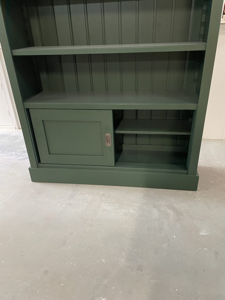 Schuifdeur open boekenkast Ral 6020