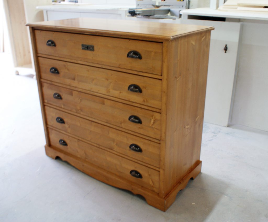 zijaanzicht grenen commode kast