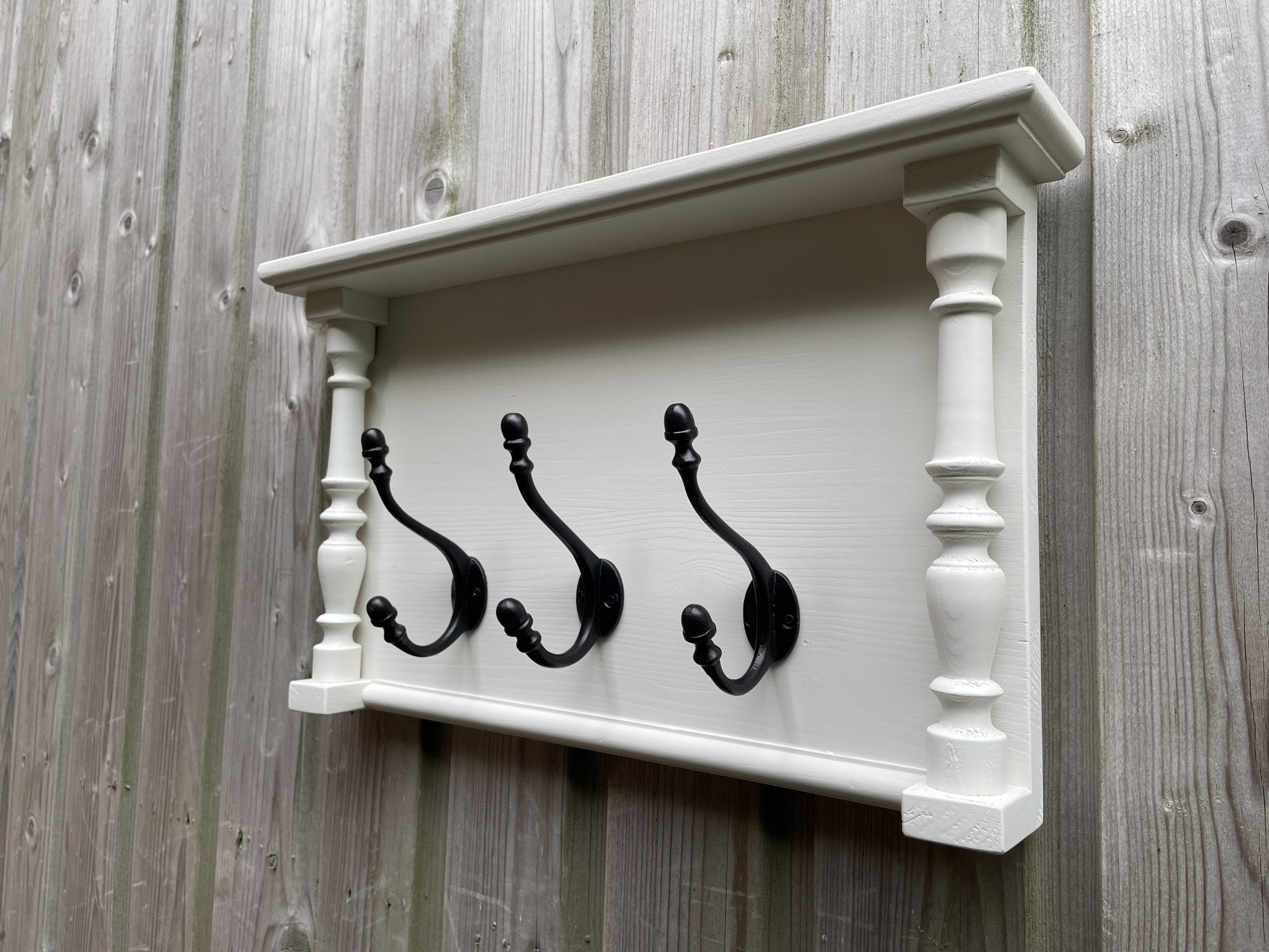 Zijaanzicht brocante kapstok met zuiltjes